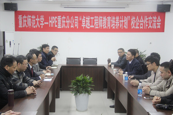 2016年3月10日下午,重庆师范大学与HPE重庆分公司(前身是上海惠普有限公司重庆分公司)“卓越工程师教育培养计划”校企联盟暨HPE“卓越班”培养计划的签字仪式在重庆师范大学凯撒学术报告厅隆重举行,这标志着重庆师范大学与HPE重庆分公司校企联盟正式建立,共同开启了校企合作创新人才培养、科技成果转化与应用的互惠共赢之路。