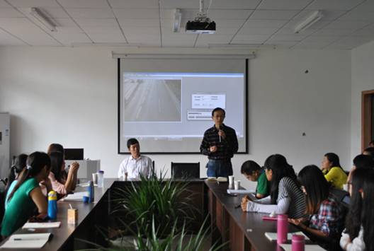 在报告会中,陈兵旗教授非常形象的通过机器视觉就像人的眼睛的比喻引入了机器视觉技术的应用研究的主题。报告分为两大部分,第一部分陈兵旗教授通过自己对机器视觉技术研究领域的实践进行分类讲解,其中详细介绍了农田机器人行走路线检测和蜜蜂轨迹跟踪及舞蹈解析。第二部分为视觉技术中的部分导航产品的视频和程序演示,生动形象的演示了机器视觉技术在生活中的运用,也突出了机器视觉技术的实用性和可发展空间。最后陈兵旗教授与研究生们互动,解答研究生们在报告会中所涉及问题的疑惑,与会的研究生们积极踊跃提问,表现了新濠峰娱乐