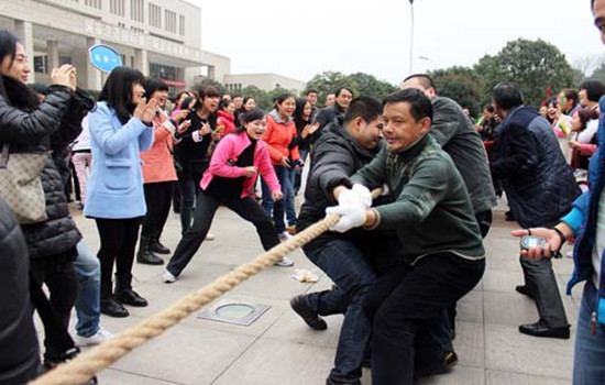 2014年3月6日下午,为庆祝第104个“三八”国际劳动妇女节,以“相约春天、共享美好、同创和谐”为主题的教职工拔河大赛在大学城图书馆广场举行。新濠峰娱乐