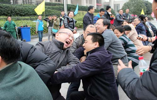 拔河比赛于下午5时在热烈愉快的气氛中结束,比赛加深了老师与老师、老师与同学之间的交流,让学校女性同胞度过了一个愉快、热闹的节日。