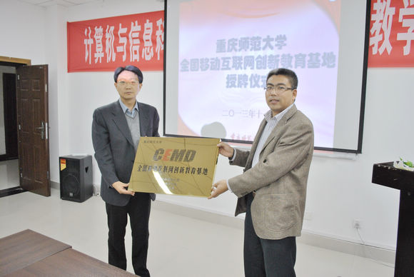 在授牌仪式上,李月臣院长致辞并作了热情洋溢的讲话,他相信全国移动互联网创新教育基地的设立,对重庆师范大学占领IT产业高端人才的培养工作具有战略制高点的意义,将进一步促进我校移动互联网人才的认证和培训工作。刘军书记对工业和信息化部和全国移动互联网创新教育基地管理办公室对重庆师范大学移动互联网创新教育工作的支持和帮助表示感谢,希望通过基地建设进一步加强学校与企业的沟通合作。艾鹏主任对当今移动互联网产业快速发展的现状进行了阐述,对重庆师范大学在移动互联网方面的积极建设给予了肯定。他表示,重庆师范大学移动互联网创新教育基地授牌后,将得到工信部有关专家和移动互联网企业在学科建设、专业建设和人才培养等方面更大力度的扶持,从而为移动互联网创新型人才培养、产业发展提供强有力的支撑和保障。屈艳东秘书长说,在工业和信息化部指导下成立的“全国移动互联网创新教育基地”,旨在加强产学研结合,促进高校科技创新和学生就业,推动移动互联网产业发展。
