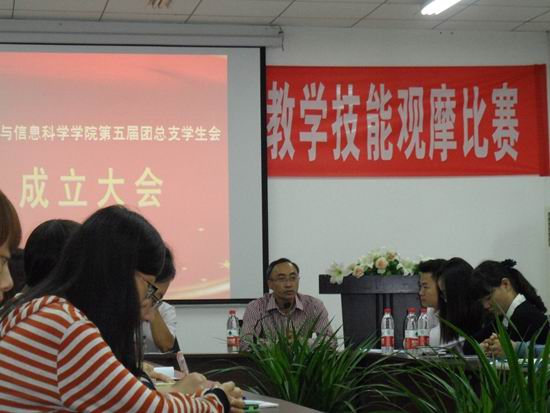 党总支书记刘军,党总支副书记杨宇,团总支副书记张敬,辅导员朱嘉洁、傅帆、辅导员助理(研究生)王节、相琳等领导和老师出席,全体第五届团总支学生会干部参与。大会由张敬老师主持。