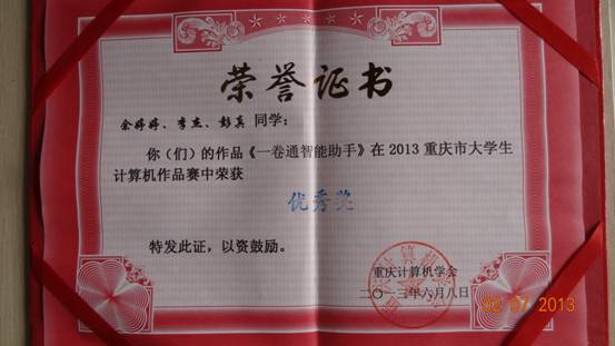 报佳音:新濠峰娱乐 学子在2013重庆市大学生计算机作品赛获优异成绩