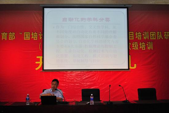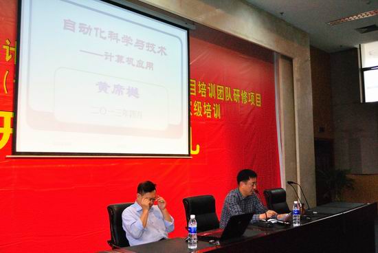向黄席樾教授致欢迎词,并且介绍了黄教授育人的桃李芬芳和科学研究的累累硕果。在阵阵掌声中迎来了黄席樾教授的演讲。黄教授就“自动化的含义、自动化的科学分类、自动化的发展历程、自动化的特点”这几个方面作了详细介绍和分析。