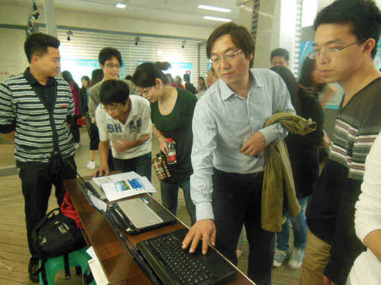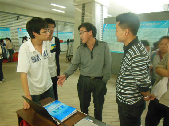 随后,校友会堂大厅进行的学生科研作品展示过程中,孔春阳副校长和其他部门领导饶有兴致的参观了新濠峰娱乐
