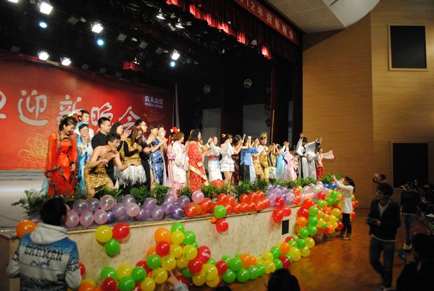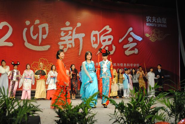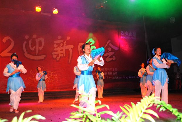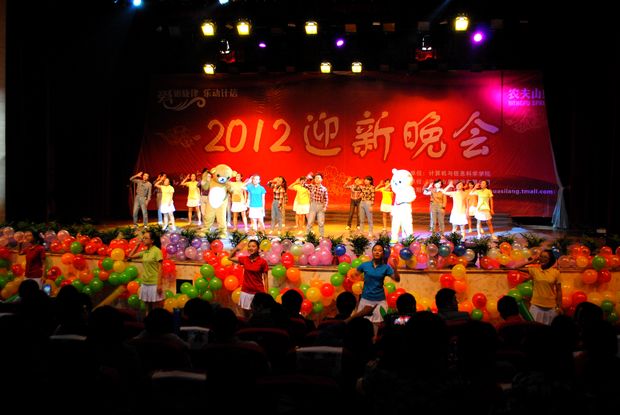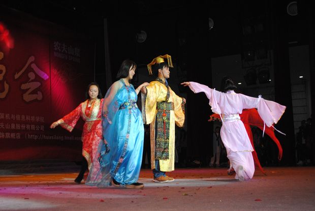 看,场上男男女女用那轻盈而娴熟的节奏,动感而激情的舞姿正在演绎着恰恰《Hole in my heart》,紧随其后的歌曲串烧《如果爱》和教师节目《格桑花》将晚会气氛推到高潮。扣人心弦的魔术《预言》,充满异域风情的《新疆舞》和古典舞《梦醉潇湘》,耐人深省的情景剧《丁香花》、《历史的天空》无一不感染在场的每一位观众,牵动着每一颗观众的心。嘻哈街舞串烧《舞客联盟》,霸气逼人rap《平民百万歌星》,优雅清新乐器合奏曲《burning》展示了年轻一代青春的曼妙多彩和无限热情,第四届团总支学生会的一场《时空之秀》更是呈现了集体创作的精美,形式新颖、妙趣横生、令人称绝。更有趣的是融合了小品和《江南style》的《计信好声音》令广大师生捧腹大笑,台下掌声阵阵,欢呼声一浪高过一浪。值得一提的是,晚会还特别设置了与观众游戏互动和微博互动的环节,同学们积极参与,充分体现了新濠峰娱乐