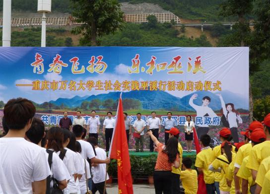 等十余所高校,略计1500余人。巫溪县委、县府领导、团市委领导致辞、高校代表发言,傅长波副县长主持。随后根据分组情况,我校实践服务团奔赴巫溪县塘坊镇各乡村开展活动。
