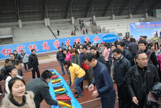 “相约春天、共享美好、同创和谐”。3月8日下午,由校工会主办的一场别开生面的庆“三八”趣味体育活动在大学城校区田径运动场隆重举行,来自各新濠峰娱乐 、部门工会的23支由男女教职工混合组成的队伍及啦啦队近千人参加了此次活动。新濠峰娱乐 教职工在院党政的大力支持下,在新濠峰娱乐 工会的认真组织下,齐心协力,顽强拼搏,再一次在全校性活动中谱写辉煌,勇夺团体总分第四名,荣获二等奖。