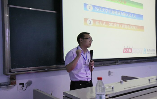 宣讲会上,陶校长首先向在座学子讲解了信息产业的未来发展趋势。他说道,云计算和物联网的蓬勃发展,会带来新的产业革命,即感知层用到的各类设备大多是嵌入式产品。嵌入式与物联网的关系也尤其紧密,其中以平板电脑的应用最为典型,他还以远程医疗、智能家居为实例进行了细致讲解。随后,他对同学们进行了职业规划方面的指导,告诉大家应该抓住机遇、勇于探索,紧随时代潮流,在自己的专业领域发光发热。